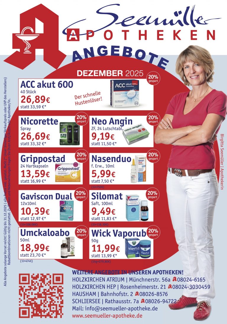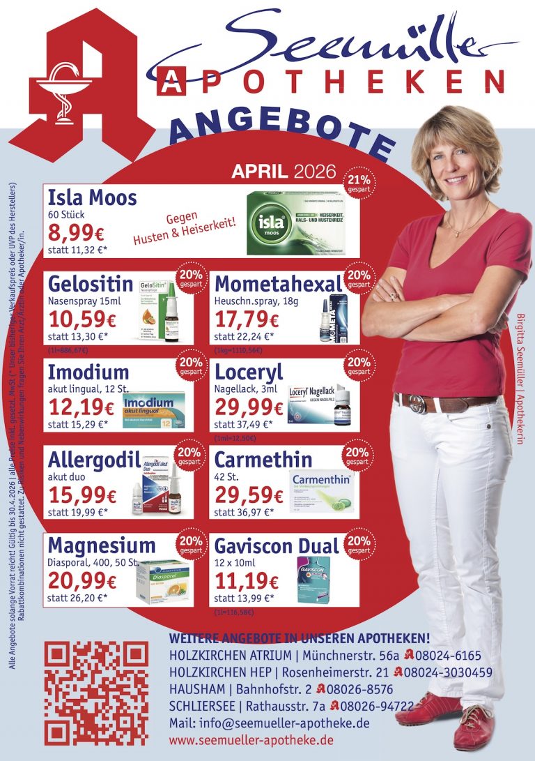 Bei uns finden Sie Beratung und Hilfe in Fragen der Gesundheit und des Wohlbefindens! Besuchen Sie eines unserer vier Häuser in der Region (Schliersee, Hausham, Holzkirchen-Atrium und Holzkirchen-HEP) und erleben Sie unser engagiertes Apotheken-Team! Sie finden bei uns nicht nur Medikamente und Beratung, sondern auch ein breit gefächertes Angebot an Wellness- und Kosmetik-Sortimenten!